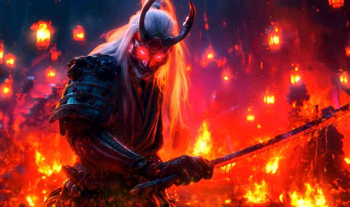 SEO Title Fiery Oni Samurai - Demon Live Wallpaper